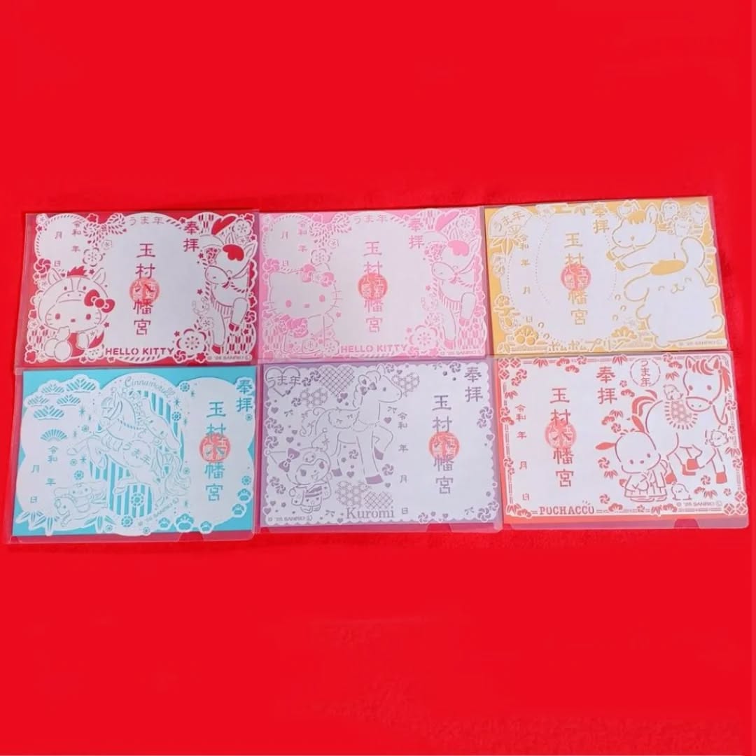 ご好評いただいております 午年の #サンリオ切り絵御朱印 は、ハローキティ(2種類) ポムポムプリン シナモロール クロミ ポチャッコ の全6種類です。